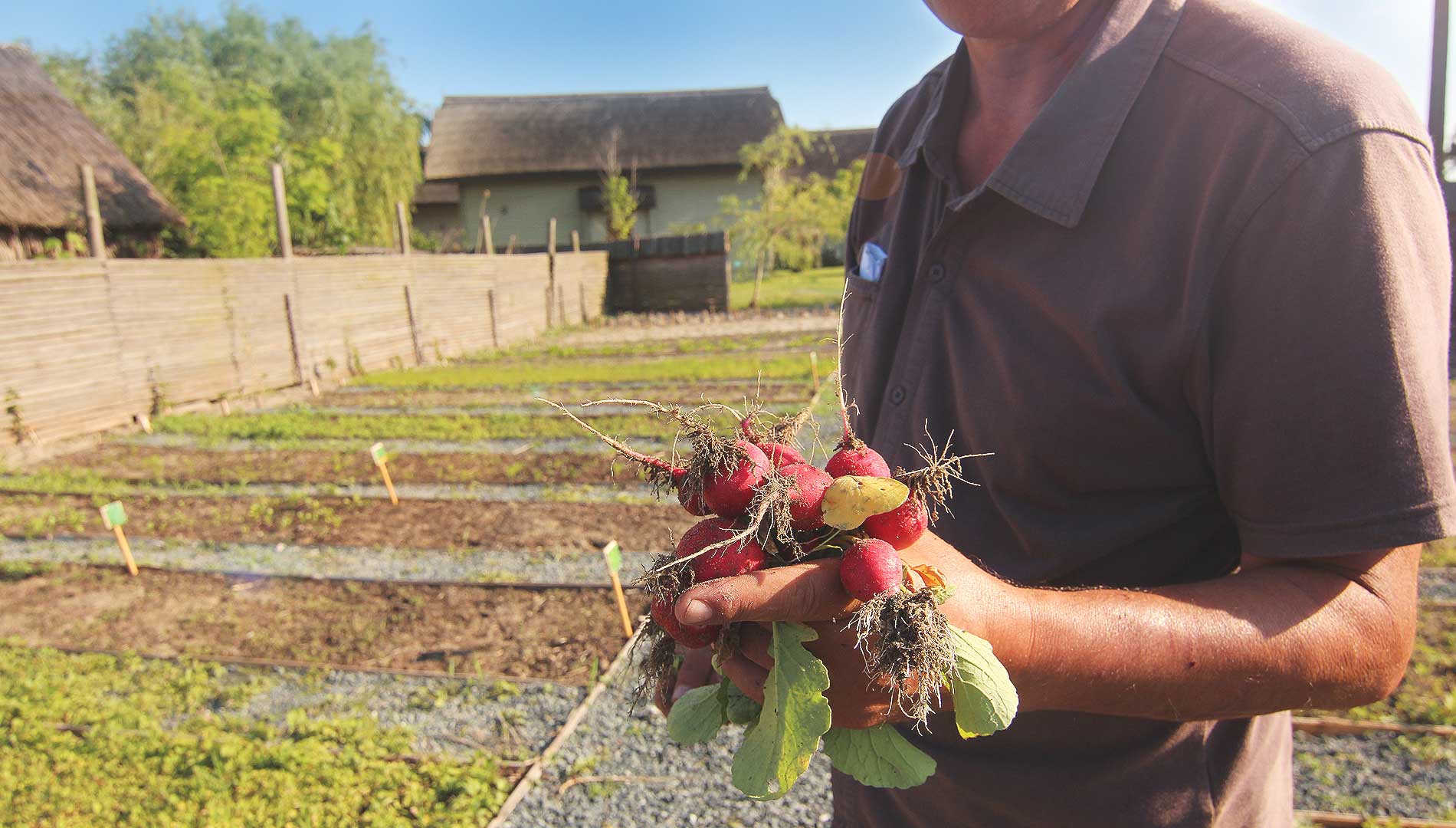 Parcelele de pământ sunt sădite cu semințe de legume și ierburi, pe care le folosim mai departe în prepararea mâncărurilor din restaurant sau braserie.